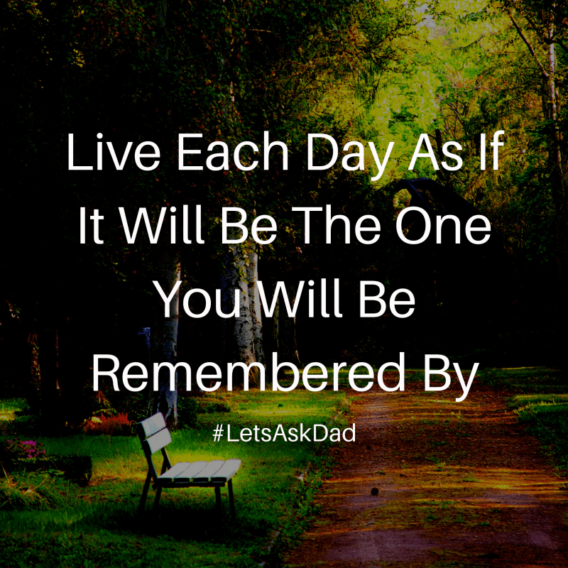 The day will come that we will be laying in a box and people will reflect on how we lived our life. Every day should be lived in a way we want to be remembered.